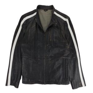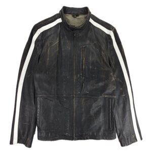 Rogue Distressed Black Leather Café Racer Jacket XL – Genuine Grain