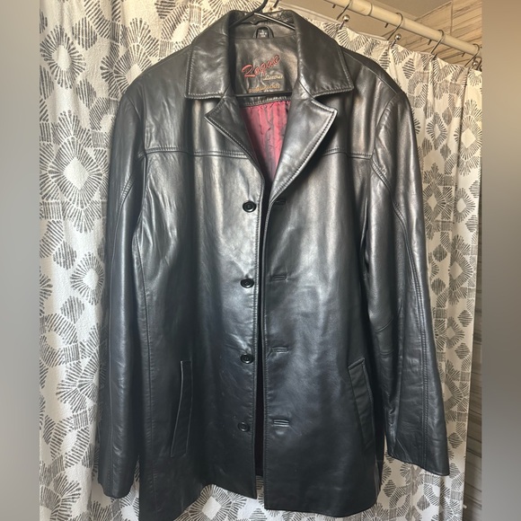 Men’s large Rogue genuine leather jacket. Some flaws, but overall in great condition!