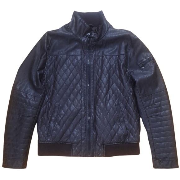 Rogue State Quilted Faux Bomber Leather Aviator Moto Jacket Black Men’s Sz M