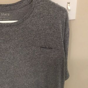 EUC Tee with a small chest pocket. It’s in heather gray.