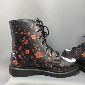 Get ready to unleash your inner goth with these Rogue + Wolf Lone Wolf Vegan Leather Combat Boots! These boots are in women's size 6.5 and feature a stylish floral design that's perfect for adding an edgy touch to any outfit.