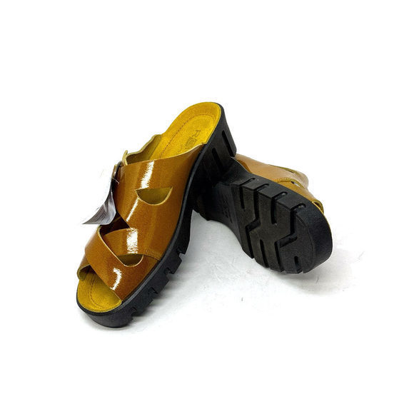wedge platform sandal, a soft perforated and fully breathable insole. Designed to reduce perspiration there by offering excellent comfort. Lackleder 1497 faux-paten leather