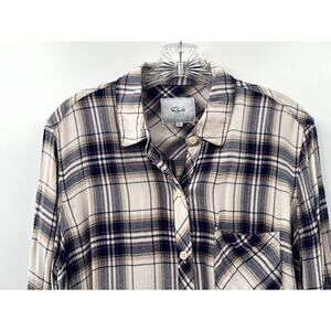 Roils Women's Multi Plaid Metallic Long Sleeve Flannel Button Down Shirt Sz Small