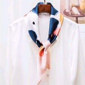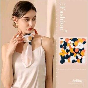 Roizsx Fashion Head Scarf Square Satin for Hair Beach Print Abstract Pink/Brown/Green New with tags