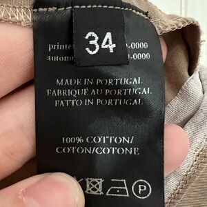 Brown cotton (100% Cotton). Skirt. Exposed center back closure. Pockets. 33" from waist to hemline.