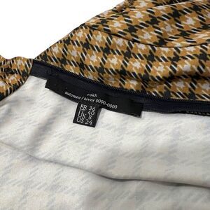 Rokh Women's Small Brown Beige Houndstooth Satin-Jersey Turtleneck Top Size 2-4