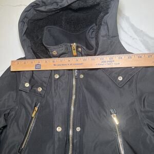 Rokka&Rolla Womens Black Winter Coat Faux Fur Lined Hood Military Parka Jacket M