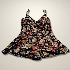 Rokoko Romper Adjustable Spaghetti Straps Front Button Floral Multicolor W M NWT