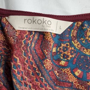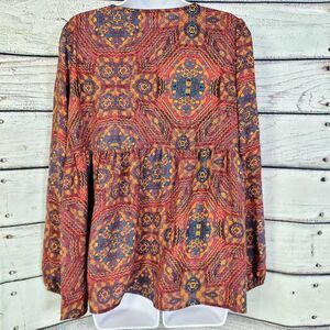 Rokoko by Dozz Boho Geometric Print Long Sleeve Tunic Top Size L Made in USA
