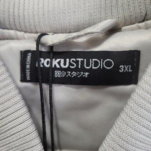 Roku Studio 'Ice Scream' Gray Satin Bomber Jacket Sz 3XL / 2XL, Runs Small