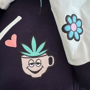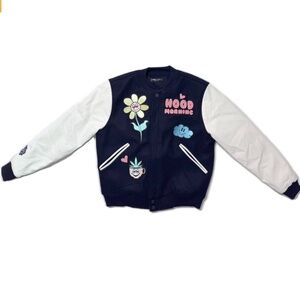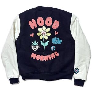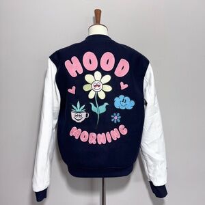 RokuStudio Hood Morning Navy and White Varsity Jacket Size Medium NWT