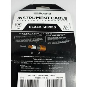 The Roland Instrument Cable RIC-B3 Black Series is a high-quality single cable designed for musical instruments and pro audio equipment. With a 3-foot length and a 1/4" straight/straight connection, this black cable is perfect for connecting various instruments and devices in your setup. Made by the trusted brand Roland, this cable is reliable and durable, making it an essential component for any musician or audio professional. With a quantity of 2 included, you can easily expand your setup or have a spare on hand for when you need it.