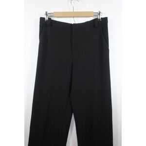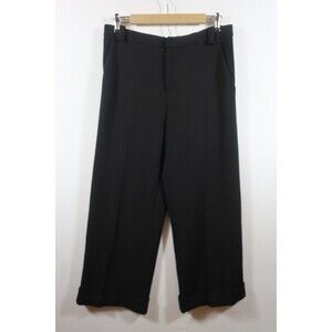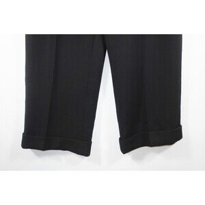 Roland Mouret Black Crepe Wide Leg Pants Wool Silk Lining Cuffed Crop Size 8 10