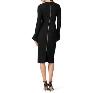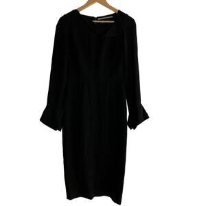Roland Mouret Liman Dress Long Bell Sleeve Back Zip Sheath Knee Length Black 6