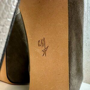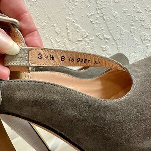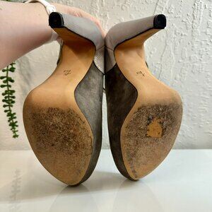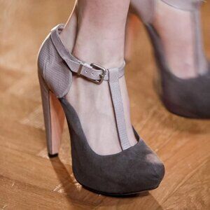 Roland Mouret gray platform heels T-strap snakeskin and suede leather.
