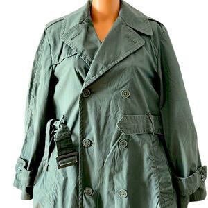 Vintage 70s Men’s Military Trench Coat Army Green Size 36R