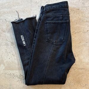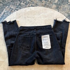 Rolarola Medium Black High-Waisted Jeans, this is a well known Korean brand. Super cute and flattering fit. Baggy, trending, distressed.