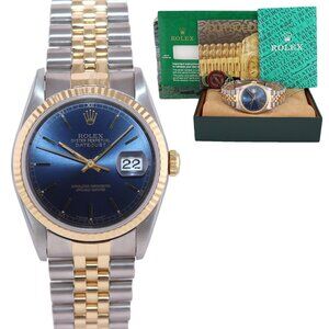 Rolex 36mm Blue Face Two Tone Watch W/ Cards and Box
