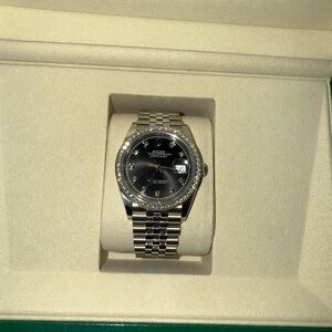 Stylish Rolex oyster 36 mm, white gold and diamonds black dial