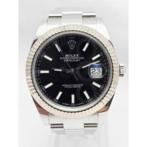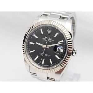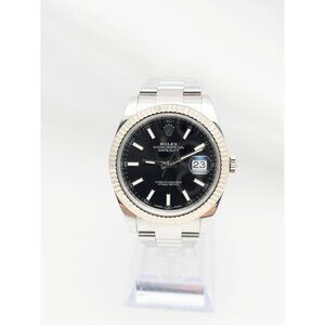 Up for sale is a stunning Rolex Datejust II Ref. 126334, featuring a sleek black dial, white gold fluted bezel, and classic 41mm Oyster case. This timepiece combines modern proportions with the timeless elegance Rolex is known for.