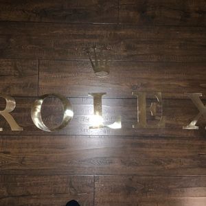 Solid brass lettering sent out to Authorized dealers for display on their wall. The instructions that Rolex sent out with the lettering suggests spacing so that the sign can be up to 4' wide. These signs came out of a storage building south of Paris, there is no date on them just a barely readable piece of old paper with the instructions on spacing
