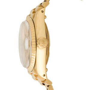 Oyster Perpetual Collection 26mm Case Dimension 18K Yellow Gold Featuring Automatic Movement with Date Complication Fluted Bezel Gold Dial President Bracelet with Deployant Clasp Minor wear throughout