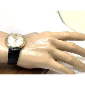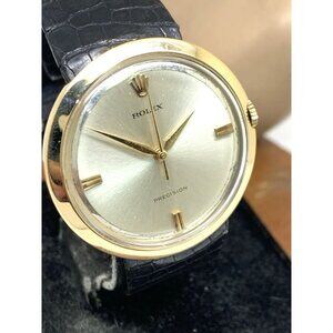 1960's Rolex Precision Men's Watch 9996 UFO Vintage Swiss Mechanical 18k Gold Case Silver Dial Black Leather Strap 36mm Rare! (G9888Y)