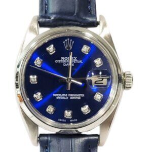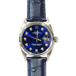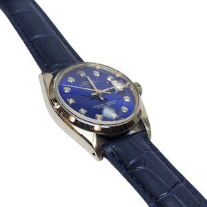 Rolex Unisex 34mm Date 1500 blue diamond on leather strap