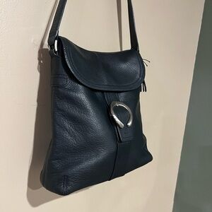Rolf Genuine Leather Black Leather/PVC Shoulder Bag Great Preowned Condition