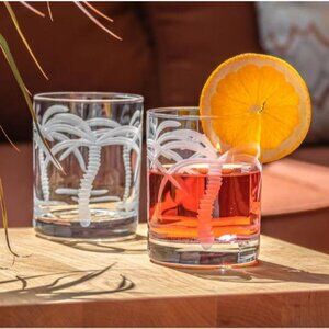 Rolf Glass Palm Tree Double Old Fashioned Glass 13oz | Etched Coastal Barware