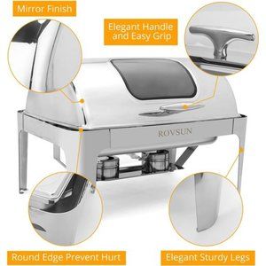 Roll Top Chafing Dish Buffet Set,9 Quart Rectangular Stainless Steel Chafer