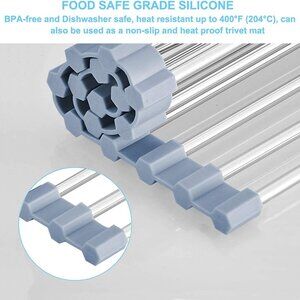 SPACE SAVING : The rollable kitchen drying rack is designed with 15 stainless steel tubes, fixed firmly by silicone, which makes it easy to use, lay