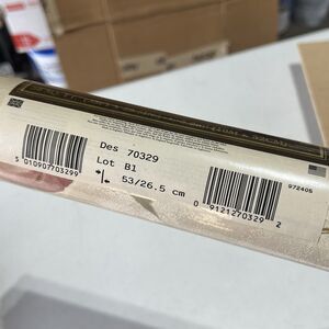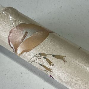 Some light wear in a few spots from storage. Still packaged, but some tears in packaging. Off white background with pink and peach calla lily flowers. Pearl lustre finish. Each roll is 33 ft x 20.5 in and covers 56 sq ft.