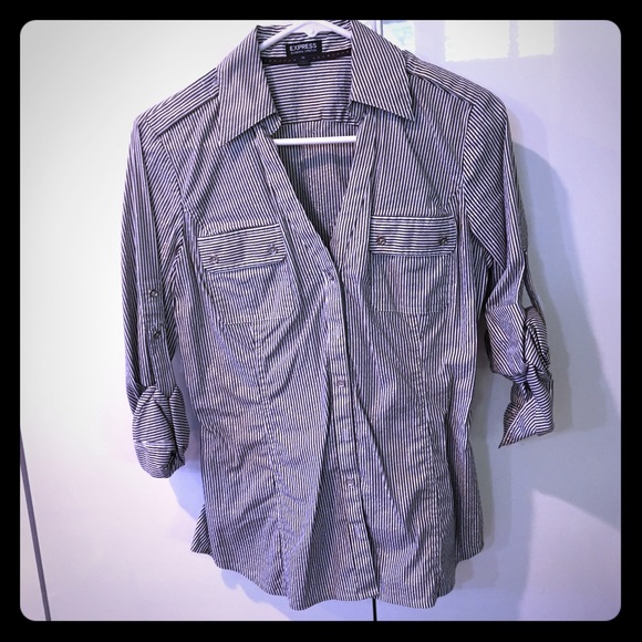 Express striped blouse. In excellent condition! Worn once. The sleeves can be worn long, or rolled up 3/4 length! Very cute and versatile.