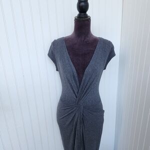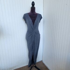 Rolla Costa Gray Charcoal Twisted Front High Low Plunge Neck Cap Sleeve Dress M