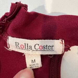 Rolla Coster Bodycon Halter Midi Dress Women's size Medium Burgundy / Wine / Red Back / rear zipper entry. Fabric is medium weight, stretchy, and forgiving. Good pre-owned condition. The zipper is fully functional but wrinkles when the dress is hanging. Unknown if the zipper lays flat when the dress is being worn.