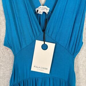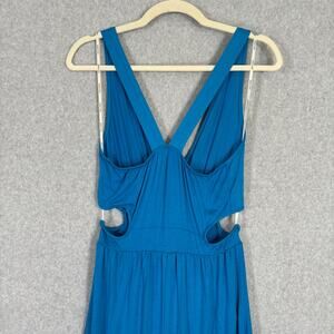 Rolla Coster Dress Medium Blue Maxi Tiered Cut Out Jersey Knit Boho Resort Vaca