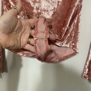 Rolla Coster EUC pink stretch velvet bell sleeve off the shoulder bodysuit M