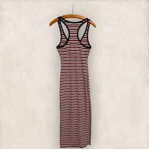 Rolla Coster Maxi Dress Side Slits Small Stripe Bodycon Midi Dress red black