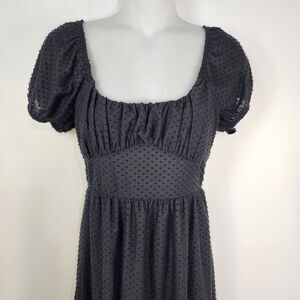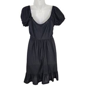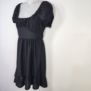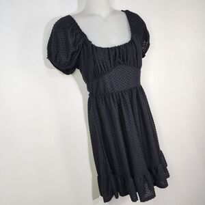 Rolla Coster Mini Dress Large Black Swiss Textured Dot Puff Sleeve Ruffle Hem