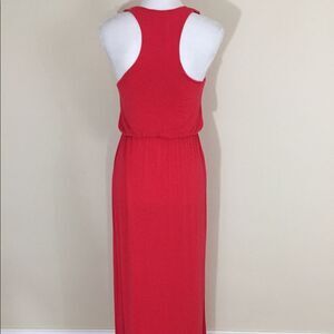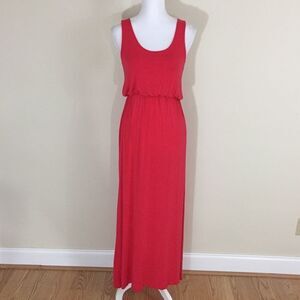 Super cute pre-owned Rolla Coster red sleeveless racerback maxi dress, size small. Blouson top. Seam stitching in left arm pit is coming undone, cannot see when wearing. Just needs to be sewn back together. 53.5” length from shoulder to seam. No other holes or stains. Please ask all questions before purchasing.