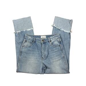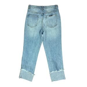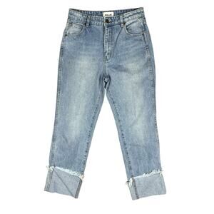 Rolla's Blue Cropped Straight Denim Jeans Stitched Rolled Hem Medium Size 28