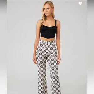 Excellent condition. Worn once or twice. Stylish high-waisted pants with a bold floral pattern. Perfect for a chic look.