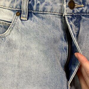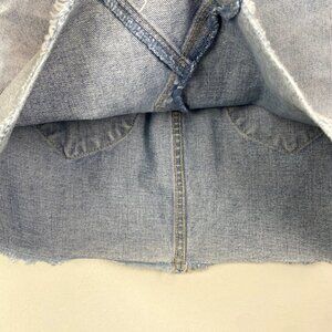 * Features: 100% cotton, rigid denim jean skirt, unlined, button closure, zip fly, 5 pocket design, frayed hem, light wash blue, belt loops, high rise, a line
