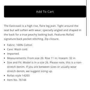 Features: no stretching cotton denim fabric, high rise, 5 pockets detail, zip fly closure, slim flare legs