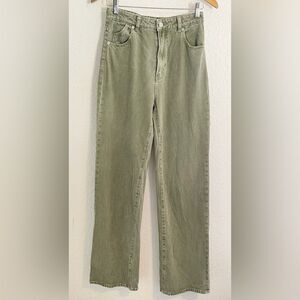 My new favorite brand of jeans! With a 70’s inspired cut Wear these straight leg jeans baggy with sneakers. Waist 13.5, rise 12”, inseam 32”. A military green for a utility streetwear style. Great condition no issues. Questions? Leave a comment below!