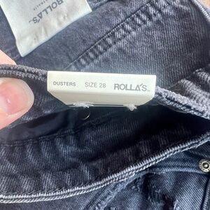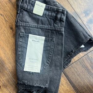 Rolla's high rise dusters. NWT. Color: faded black. Super high rise, slim flattering fit. raw frayed hem. Heavy distressing detail.