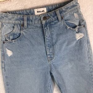 Rolla's High Rise Straight Leg Distressed Ripped Light Wash Jeans 26