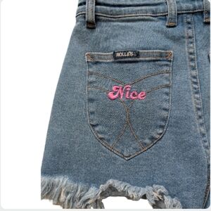 Rolla's Hightails High Rise Denim Shorts Embroidered Banana Beach Size 26/8