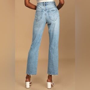 Rolla’s Original Straight Light Wash High Rise Distressed Denim Jeans